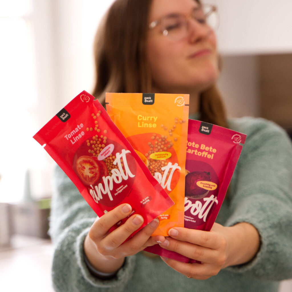 Mit pack&satt machen wir gutes Essen einfach. Der einpott macht deine Mittagspause leichter und gesünder – und macht auch nach dem Essen ein gutes Bauchgefühl, denn: er ist das erste schnelle Essen in 100% Papier verpackt!